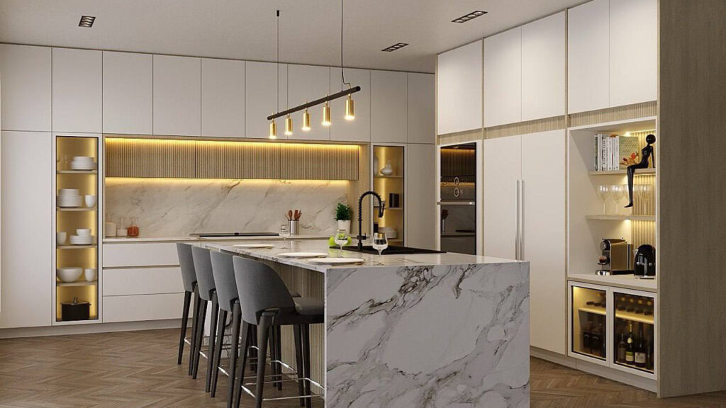 Plan and elevation of kitchen interior 2d view autocad flefront elevation detail, kitchen platform detail, gas-stovedetail, dimension detail, cabinet and shelves detail